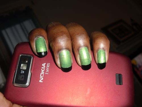Voilà le premier essai de french manicure à ma manière..........version vert numéro 126 electric green de mavala , et noir numéro 48, black de mavala .